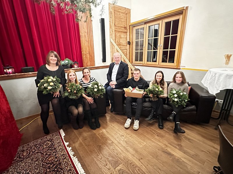 Im Rahmen der Feier gratulierte der Bürgermeister Shkurtije Sadikaj zu ihrem zehnjährigen Dienstjubiläum. Besonders erfreut zeigte er sich darüber, dass zahlreiche Mitarbeiterinnen und Mitarbeiter erfolgreich Ausbildungen abgeschlossen haben. Dies sei ein Zeichen dafür, dass Fortbildung in allen Bereichen mehr Qualifikation und besseren Service bedeute. Zu den Absolventinnen und Absolventen zählen Niklas Kogler, Sophia Ess, Beate Bösch, Angelika Loacker, Hannah Bargetz und Jasmine Meier. Darüber hinaus sprach der Bürgermeister Glückwünsche zum Familiennachwuchs sowie zu einer Hochzeit aus.
