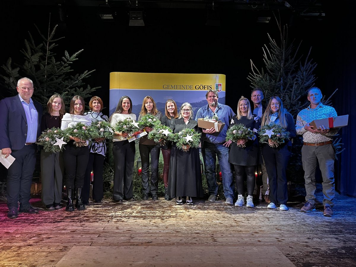 Im Rahmen der Adventfeier wurde auch Elke Kriss in den wohlverdienten Ruhestand verabschiedet. Sie arbeitete 22 Jahre als Kindergarten-Pädagogin bei der Gemeinde Göfis. Weiters gratulierte Bgm. Thomas Lampert Gemeindesekretär Rudi Malin zum 30-jährigen, Bettina Lang zum 20-jährigen und Angelika Loacker zum 10-jährigen Dienstjubiläum.
