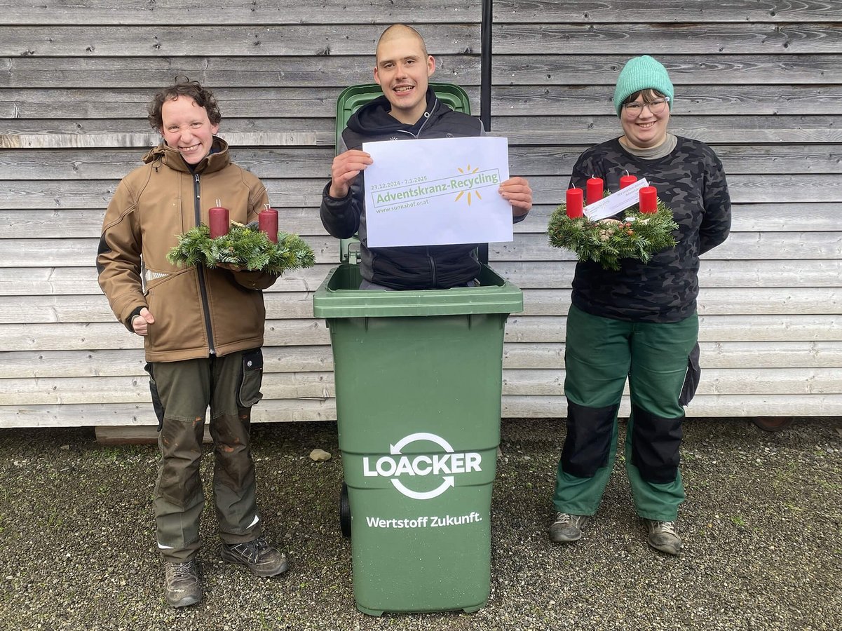 Der Adventkranz begleitet viele Menschen durch die Adventzeit. Nach den Feiertagen verliert er jedoch seinen Zweck – obwohl er wertvolle Materialien enthält. Genau hier setzt die Recyclingaktion des Sunnahofs an. Die abgegebenen Kränze werden am Bio-Bauernhof sorgfältig zerlegt. Kerzenreste werden zu praktischen Grill- und Ofenanzündern verarbeitet. Zweige und Äste wandern in den Kompost und stärken die biologische Kreislaufwirtschaft am Hof. Strohringe finden erneut Verwendung oder werden ebenfalls kompostiert, während Metalle und Drähte getrennt und umweltgerecht entsorgt werden. Aus etwas, das sonst weggeworfen würde, entsteht so eine Ressource – und gleichzeitig eine sinnvolle Tätigkeit für Menschen mit Beeinträchtigungen.