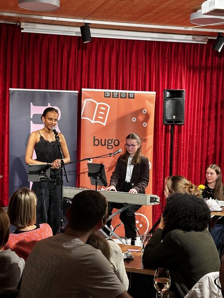 Im zweiten Teil des Abends sorgten Antonella Stolz am Bass und Matteo Weinhandel an den Drums für zusätzliche Energie. Das Publikum im vollbesetzten bugo war begeistert und erklatschte sich Zugaben.