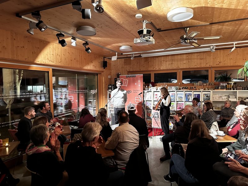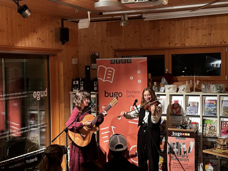 Zwei junge Vorarlbergerinnen, die in Wien wohnen und dort im Jahr 2023 den Musikwettbewerb “Podium.Wien” gewannen, starteten mit der bugo library sesssion. Zwei Stimmen, die sich gegenseitig auffangen und ergänzen, stets umrahmt vom warmen Klang der Gitarre und Violine. Alia Wünscher und Julia Jackel machen Indie-Folk mit selbst geschriebenen Liedern und lauten Gedanken.