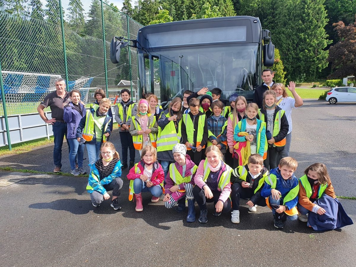 Unter diesem Namen wurde am Montag, 7.6.21 für die 3. und 4. Klassen der Volksschulen Agasella und Kirchdorf ein Busworkshop des Verkehrsverbund Vorarlberg durchgeführt. 67 Kinder in 3 Gruppen hatten am Sportplatz Hofen jede Menge Spaß und konnten einiges lernen. In einem echten gelben Landbus wurden von zwei Mobilbegleitern Verhaltensregeln auf lustige Art und Weise präsentiert. Im Vordergrund stand das Thema Sicherheit. So konnten die Kinder zum Beispiel vom Lenkersitz aus beobachten wie die Klassenkameraden im toten Winkel verschwanden. Die beliebte kleine Bremsprobe zum krönenden Abschluss wurde schon mit Spannung erwartet. Es war mucksmäuschenstill als der Bus zur Bremsung ansetzte. Die Kinder hielten sich gut fest und waren total überrascht über die Kräfte, die bei der Bremsung entstanden.