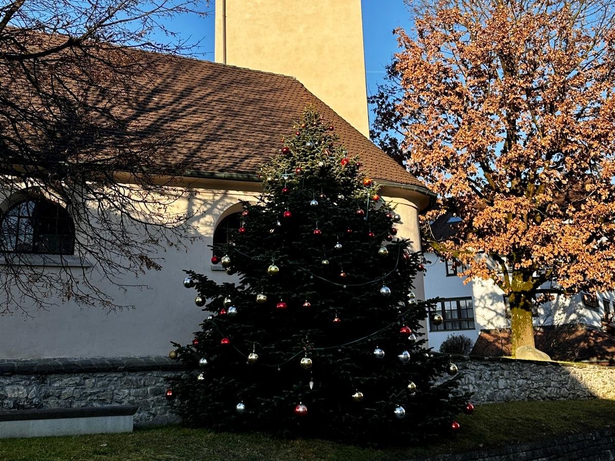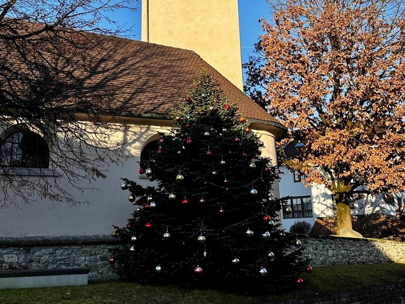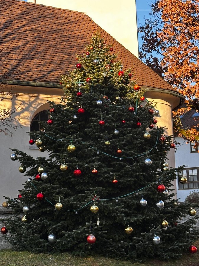 Die schöne Edeltanne bei der Sebastianskapelle kommt von Ruth Lampert und wurde von Philipp Lampert, Andreas und Julius Künz festlich geschmückt!