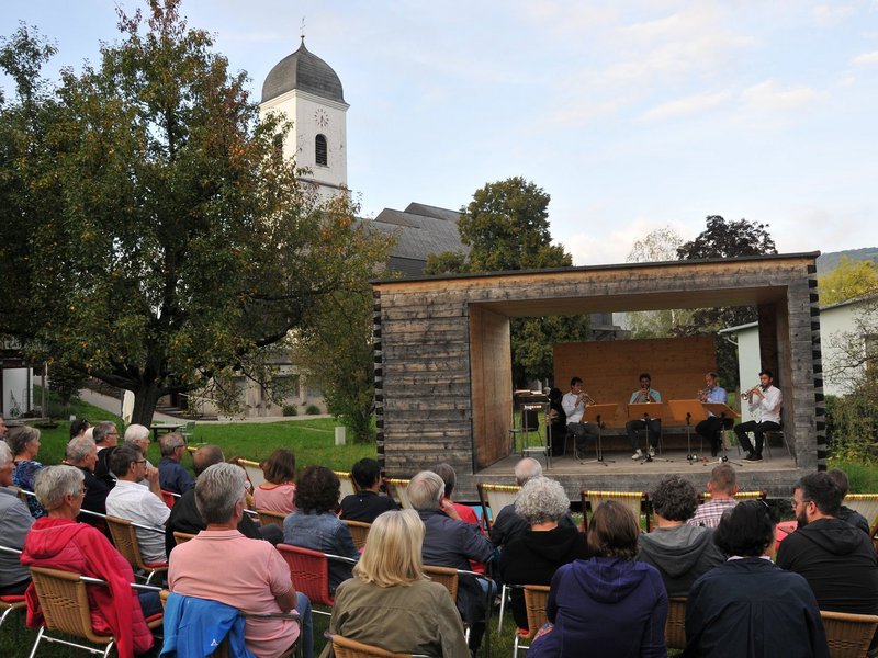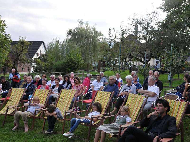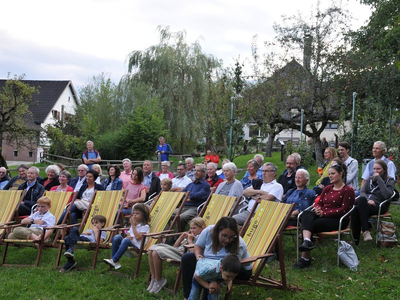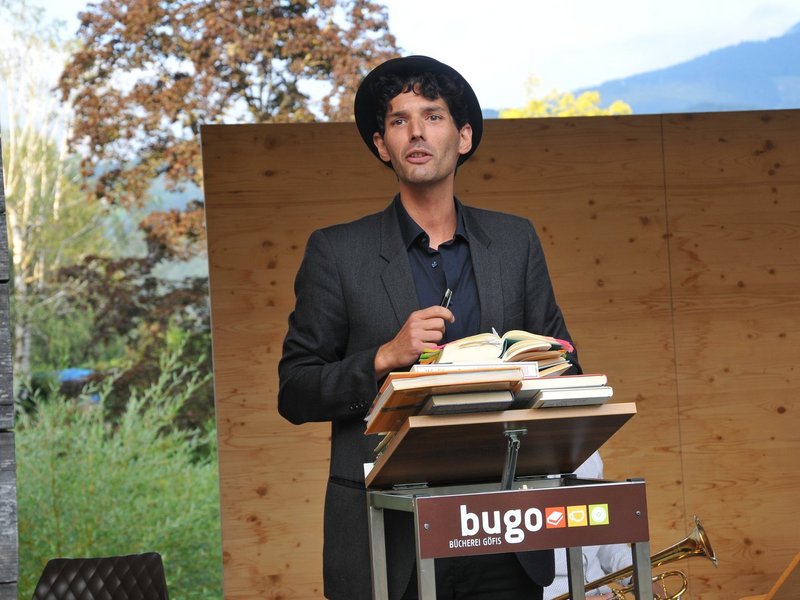 Zwischen den musikalischen Leckerbissen sorgte Schauspieler David Baldessari mit Rezitationen von bekannten und weniger bekannten Literaten und machen Textspielereien sehr humorvoll für Abwechslung und schaffte mit Bücherstapeln perfekte Übergänge in Richtung Veranstalter, der bugo Bücherei Göfis. bugo-Leiter Rudi Malin freute sich über einen wunderbaren Konzertabend mit Texteinlagen im bugo-Garten und dankte der Gemeinde Göfis und dem Land Vorarlberg mit dem Projekt „Kultur im Jetzt“ für die Unterstützung.