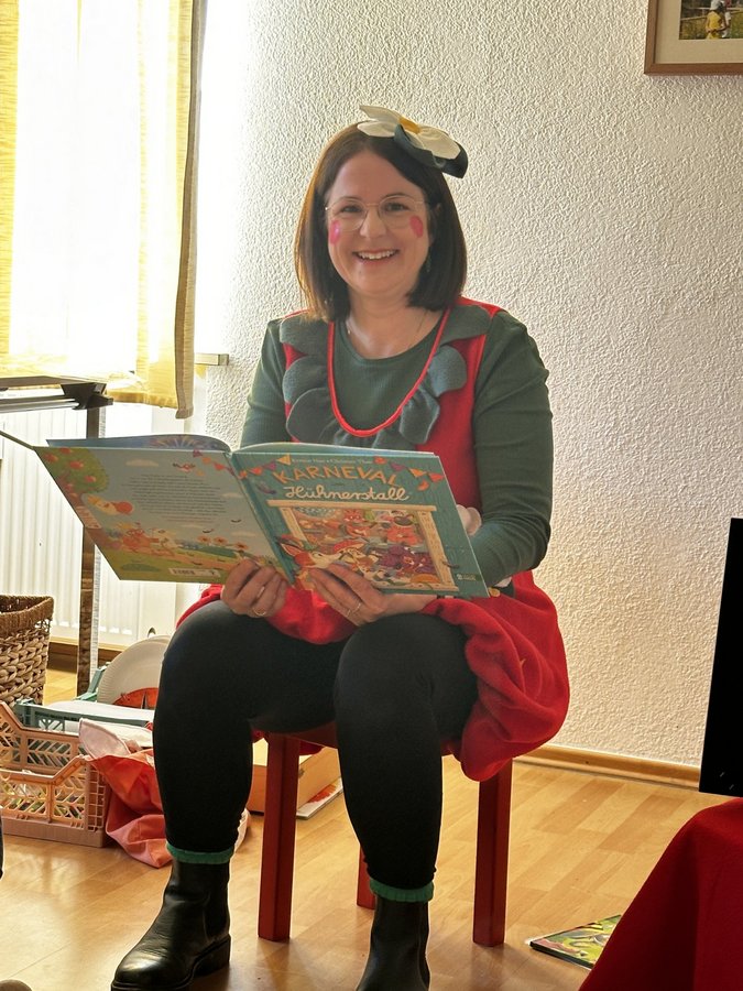 In der fröhlichen Faschingszeit war die Geschichtenkiste wieder prall gefüllt – diesmal mit lustigen Quatschgeschichten, fröhlichen Liedern und allerlei Spielen, die zum Mitmachen einluden. Zahlreiche bunte Mäschgerle im Alter von drei bis sechs Jahren sowie viele kleine und große Zuhörer*innen fanden sich ein, um gemeinsam in die bunte Welt des Faschings einzutauchen.