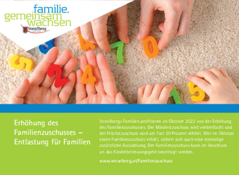 Weitere Informationen: www.vorarlberg.at/familienzuschuss