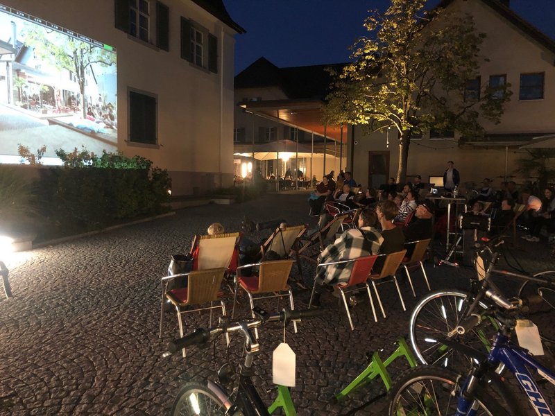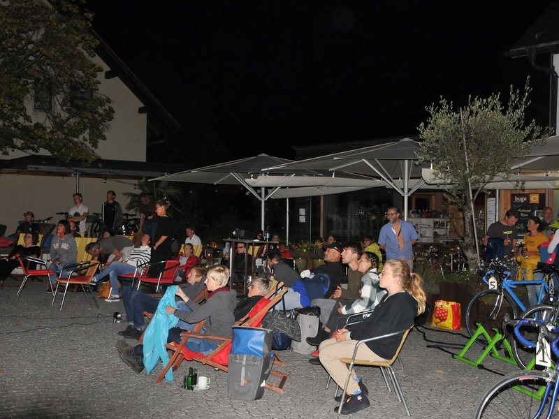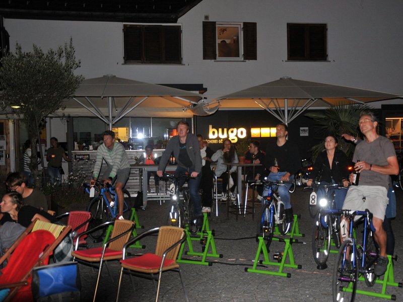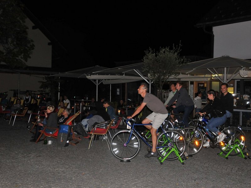 Das Fahrradkino in Göfis wurde gemeinsam mit dem Verein Radwerk aus Lustenau durchgeführt, der die Fahrradkultur fördert und auch regelmäßig Fahrradkinos organisiert. Die vielen Besucherinnen und Besucher auf dem Göfner bugo-Platz traten dabei abwechslungsweise in die Pedale und produzierten so den gesamten Strom für die Filmvorführung.