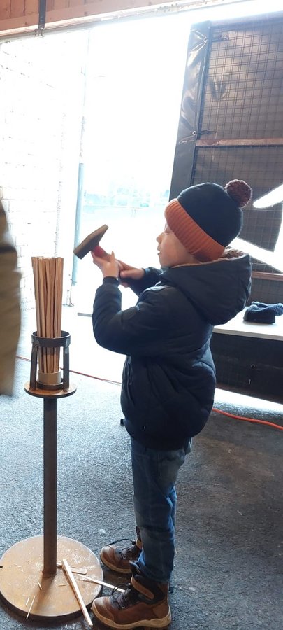 Der Funkensamstag stand ganz im Zeichen des Regens. Beim Vereinshaus konnten wir jedoch im Trockenen die Fackeln gemeinsam mit den Kindern bauen. 42 Kinder kamen in Begleitung eines Erwachsenen, um ihre eigene Fackel herzustellen. Zwischen Halsstecken und Kartonring wurden die Holzspreiß mit dem Hammer ganz eng zusammengeklopft. Einige Kinder sind bereits richtige Profis und wissen genau, wie es geht – anderen helfen wir natürlich gerne bei der Arbeit.