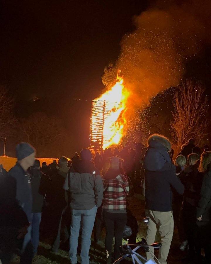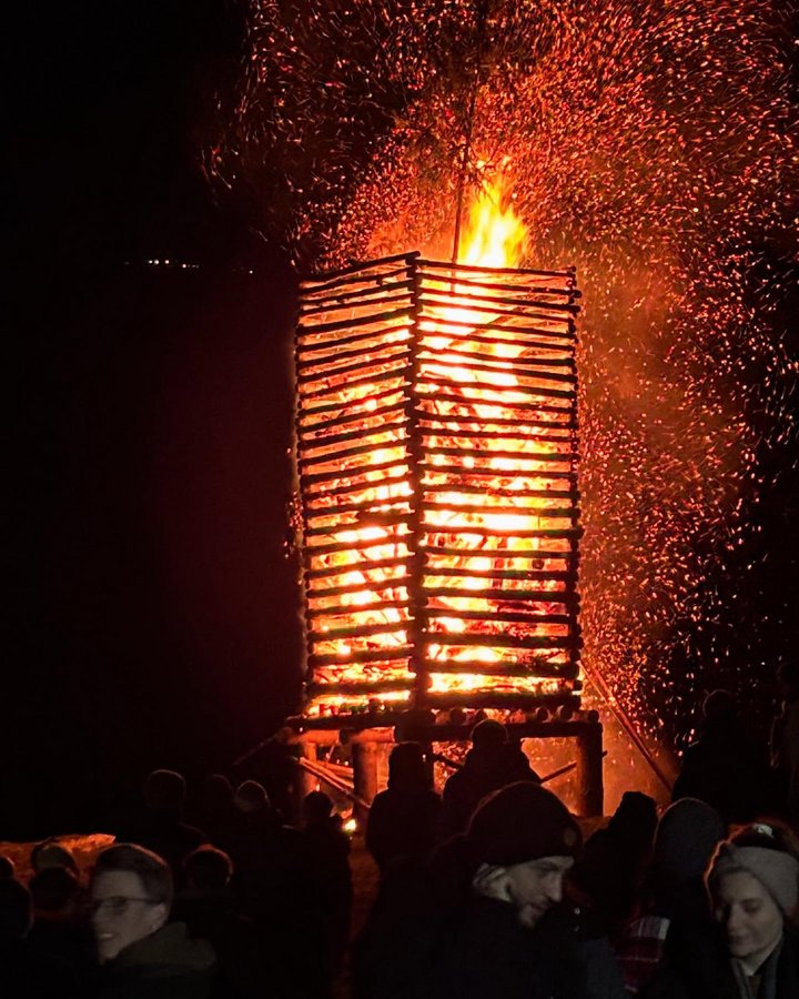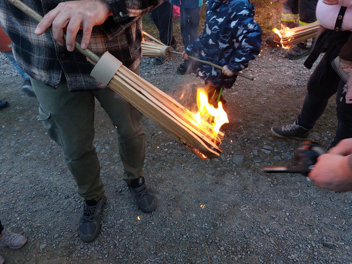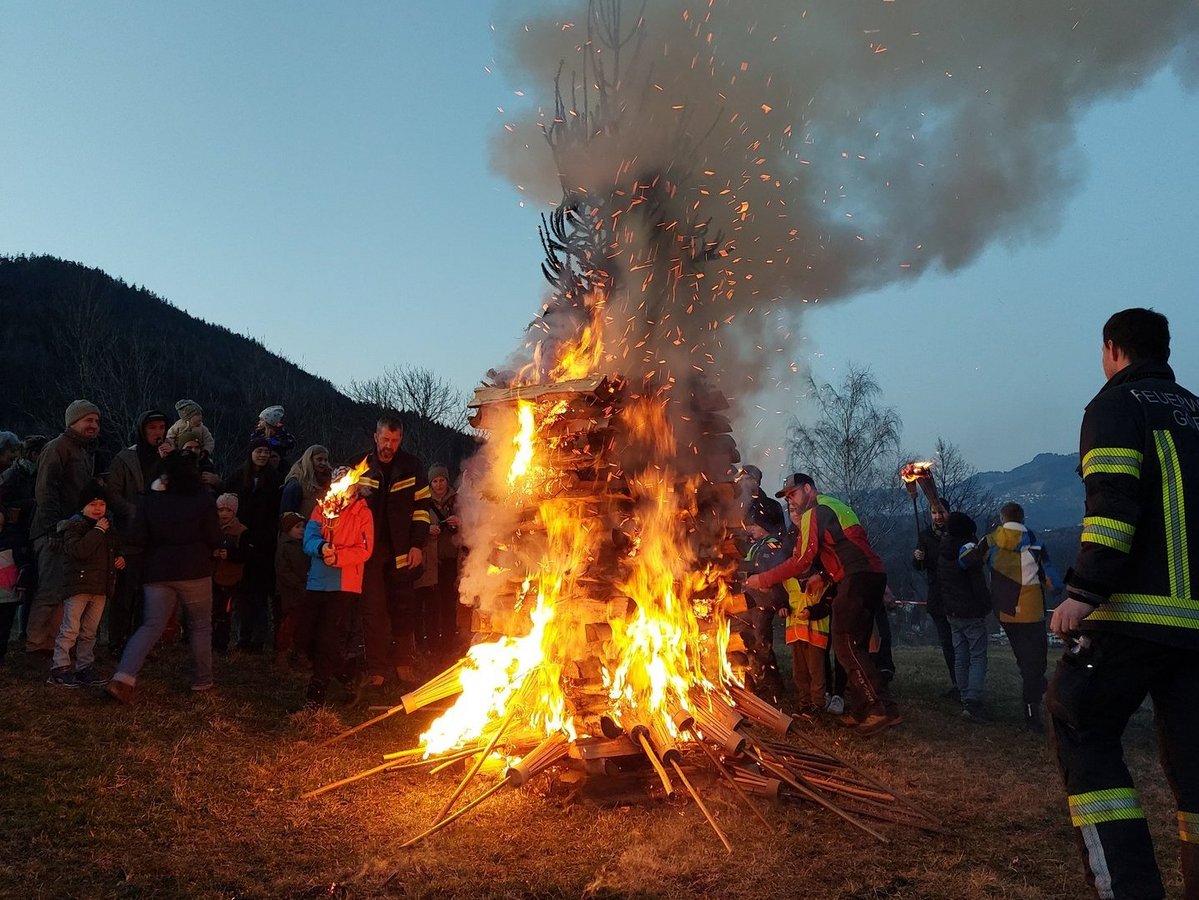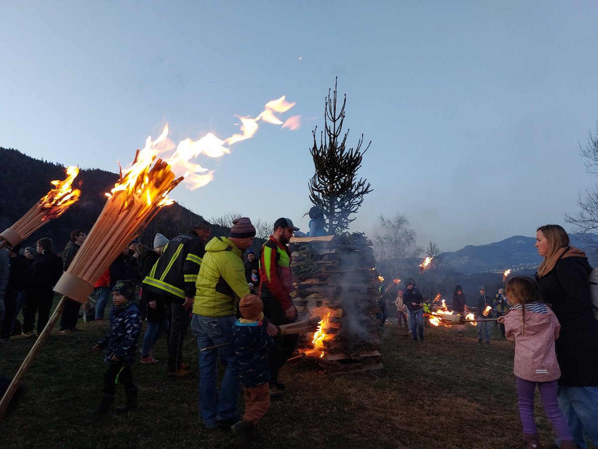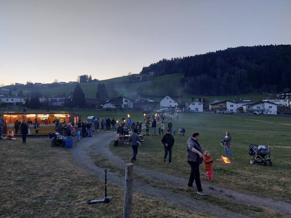 Manfred hatte vorab auch große Männerfackeln gebaut. Sechs Männer aus Göfis, schwangen die an langen Seilen hängenden, brennenden Fackeln, mit viel Kraft und Ausdauer. Die waren richtig toll anzusehen. Auch für die Jugend hatte er vier etwas leichtere Fackeln an Seilen gemacht. So können diese schön langsam in die Fußstapfen der Eltern treten.