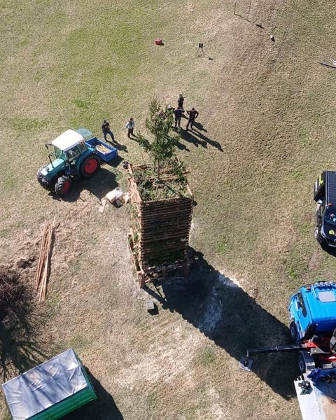 Vor dem Dunkelwerden trafen sich die Kinder auf dem Funkenplatz und bauten gemeinsam mit der Jugendfeuerwehr den Kinderfunken auf. Wunderschön stand er neben dem großen Funken.