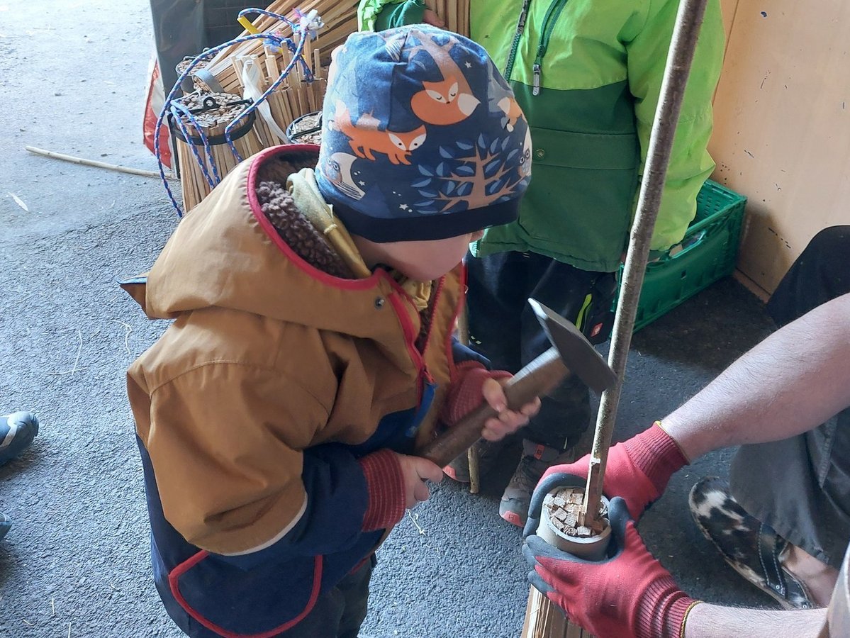 Am Funkensamstag trafen sich 45 Kinder in Begleitung eines Erwachsenen zum Fackelbauen beim Vereinshaus. Mit viel Geschick werkelten die Kinder an ihren Fackeln.