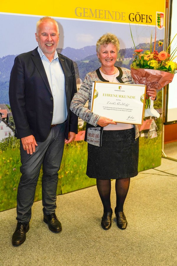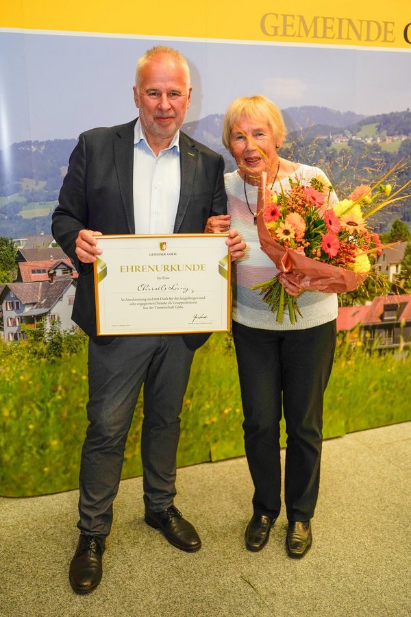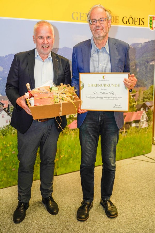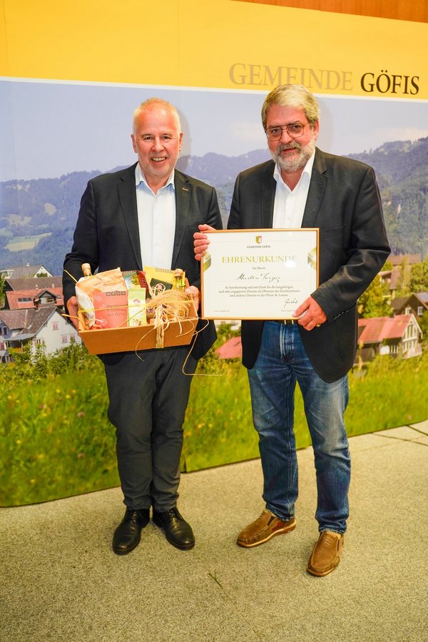 Ein besonderer Höhepunkt des Festaktes war die Überreichung einer Ehrenurkunde und eines Geschenkes an die Geehrten sowie der Eintrag in das Ehrenamtbuch der Gemeinde Göfis. Musikalisch wurde der Abend vom Musikverein Göfis unter der Leitung von Lukas Ess umrahmt. Der anschließende Umtrunk bot viel Gelegenheit für den Austausch der vielen Gäste mit den Geehrten.