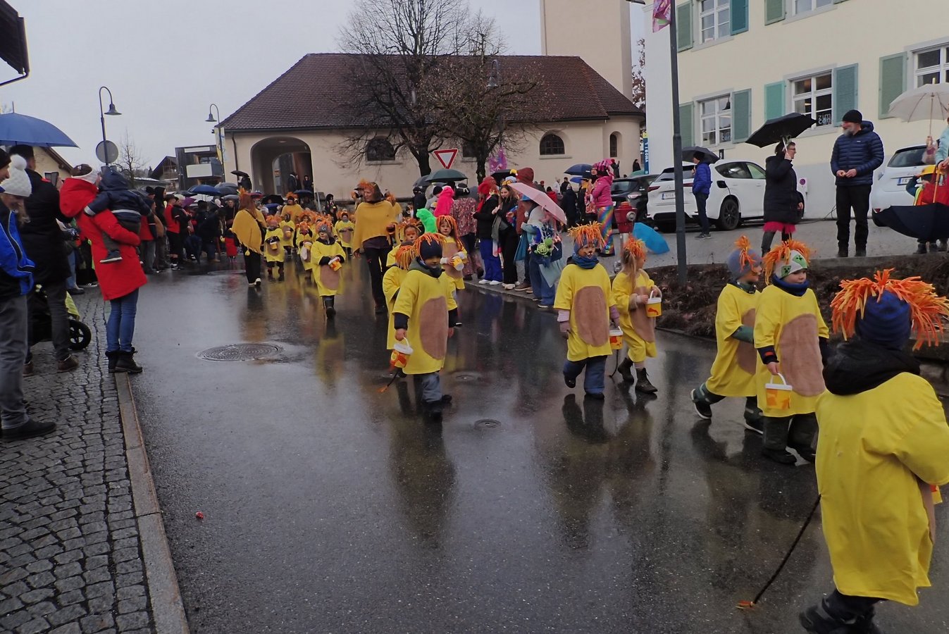 Zahlreiche Klassen der Göfner Volksschulen sowie Gruppen aus den Kindergärten nahmen mit viel Kreativität und Freude am Umzug teil und bildeten den farbenfrohen Kern der Veranstaltung. Mit fantasievollen Kostümen, fröhlicher Musik und bester Stimmung zogen die „Mäschgerle“ durch die Straßen und sorgten bei den zahlreichen Zuschauerinnen und Zuschauern für Begeisterung.