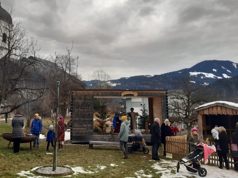 Weil gute Gedanken oft in der Stille wachsen und Zeit brauchen, bis sie das Herz erreichen, wurde im bugo-Garten im Advent ein Rundgang unter dem Motto „Sehnsucht“ gestaltet, der zum Verweilen einlud. Am 24. Dezember war es dann soweit: Nach der Kinder-Krippenfeier mit dem Krippenspiel in der Kirche besuchten über 200 Kinder die Weihnachtskrippe mit den menschengroßen Figuren im bugo-Pavillon mit den zwei Schafen im Gehege. An den Christbäumen hingen die von Kindern geschriebenen Wunschsterne. Es wurden warme Brezel und Süßmost ausgeteilt und das Lagerfeuer wärmte die vielen Besucherinnen und Besucher.