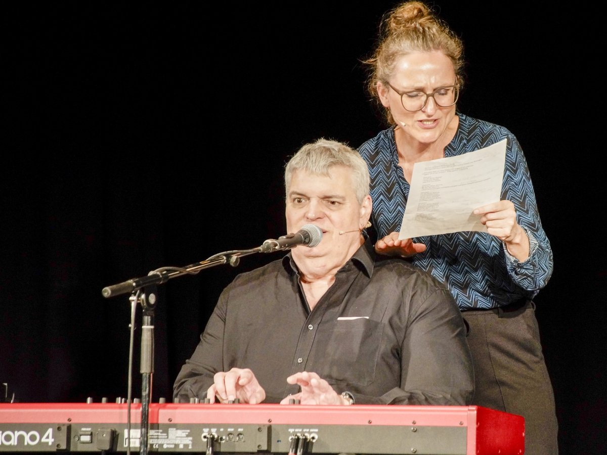 In mehrerer Hinsicht war der Auftritt von George Nussbaumer und Isabella Fink im Göfner Vereinshaus bemerkenswert: Musikalisch waren zwei Profis am Werk und begeisterten das Publikum mit einer großen stilistischen Bandbreite. Gleichzeitig konnte man Einiges lernen über den unverkrampften Umgang mit Behinderungen im Alltag. Der seit Geburt blinde George Nussbaumer erzählte über sein Aufwachsen und die Stationen bis zum Profimusiker. Daraus gab er einige kabaretthafte Episoden in seiner unnachahmlichen Art zum Besten.