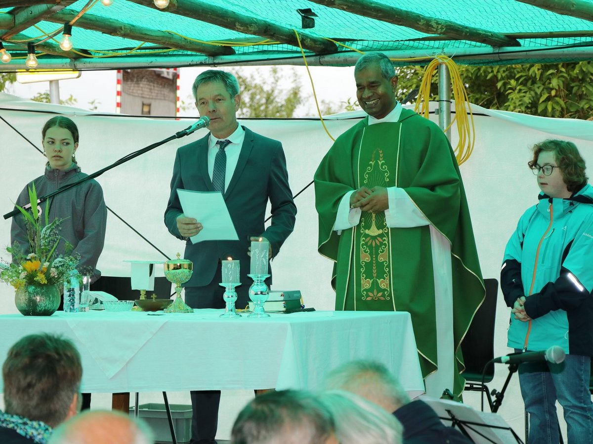 Am vergangenen Sonntag, 7. Juli 2024, fand wieder das traditionelle Mostfest bei der Mosterei Göfis Außerfeld statt. Gefeiert wurde das 70-jährige Bestehen der Mosterei. Wir starteten um 9.30 Uhr mit dem Sonntagsgottesdienst, der von Herrn Pfarrer Georg Thaniyath gehalten wurde.