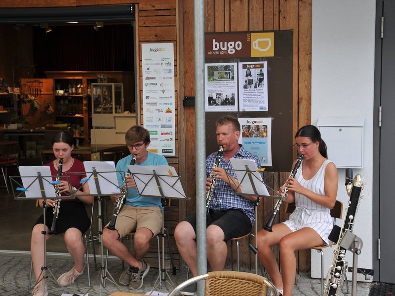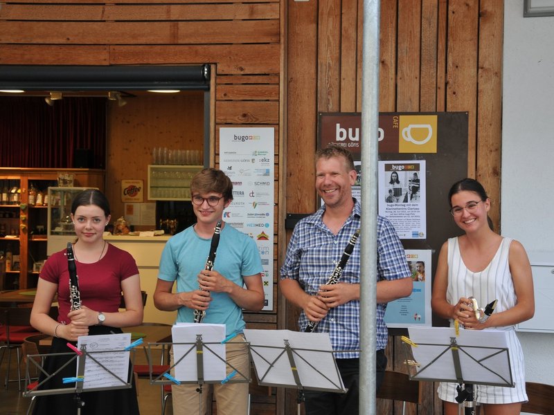 „Es war ein schwieriges Jahr für die Musikschule Walgau. Besonders die Corona-Schutzbedingungen für den Ensemble-Unterreicht einzuhalten, war eine Herausforderung. Umso schöner ist es, wieder vor Publikum auftreten zu können!“, freut sich Direktor Christian Mathis. Klara Ebli, Jonas Wrann und die Göfnerin Miriam Schönbeck spielten unter der Leitung von ihrem Lehrer Direktor Christian Mathis im Gastgarten der bugo Bücherei Göfis einige Stücke aus ihrem aktuellen Repertoire. Die Stücke reichten von Klassik bis Tango und wurden erstmals zum Musikschuljahr-Abschluss aufgeführt. Das Publikum bedankte sich mit einem herzlichen Applaus für die schöne Musik!