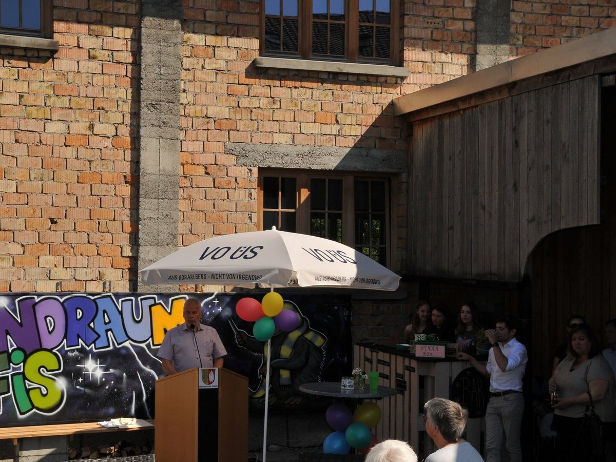 Die Jugendlichen halfen fleißig mit und versorgten die Gäste mit Getränken und Speisen. Bestes Wetter, gute Laune und natürlich ein wenig Aufregung, denn Rapper Bada aus Göfis heizte ordentlich ein! Die Jugendlichen und Gäste waren begeistert!