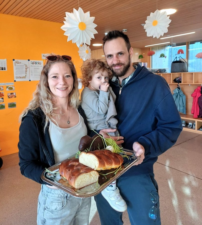 Der Osterhase bekam ein echtes Gesicht: Claudia, René und Amelie vom Gasthaus Brunnenwald in Göfis standen persönlich mit einer frisch zubereiteten Osterjause im Gepäck vor der Tür. Die Begeisterung der Kinder war groß und die Überraschung perfekt!