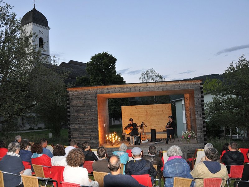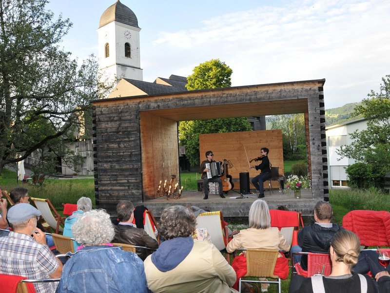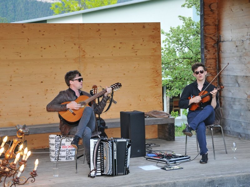 Das Duo Laut:Los mit Philipp Lingg und Christoph Mateka interpretiert, was ihnen gefällt. Ob es sich um Gedanken an ein Land, in dem man noch nicht war, einen Schlager aus dem vergangenen Jahrtausend oder um improvisierte Instrumentalvolksmusik 2.0 handelt, ist da fast nebensächlich. Laut:Los haben keinen fixen Show-Ablauf; es passiert einfach: die eigene Tagesverfassung sowie die Stimmung im Publikum tragen zu einem merkwürdigen Konzerterlebnis bei. So auch beim Konzert im Pavillon im bugo-Garten. Die ausgewöhnliche Naturkulisse, das Vogelgezwitscher und die mitreißende Musik machten den Abend zu einem legendären Ereignis! Die beiden Musiker verstanden es, das Publikum zum Dialog und zum Mitsingen zu begeistern, so, dass es allen unter die Haut ging!