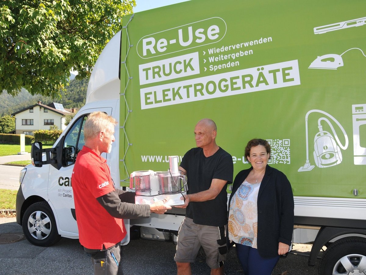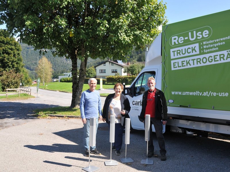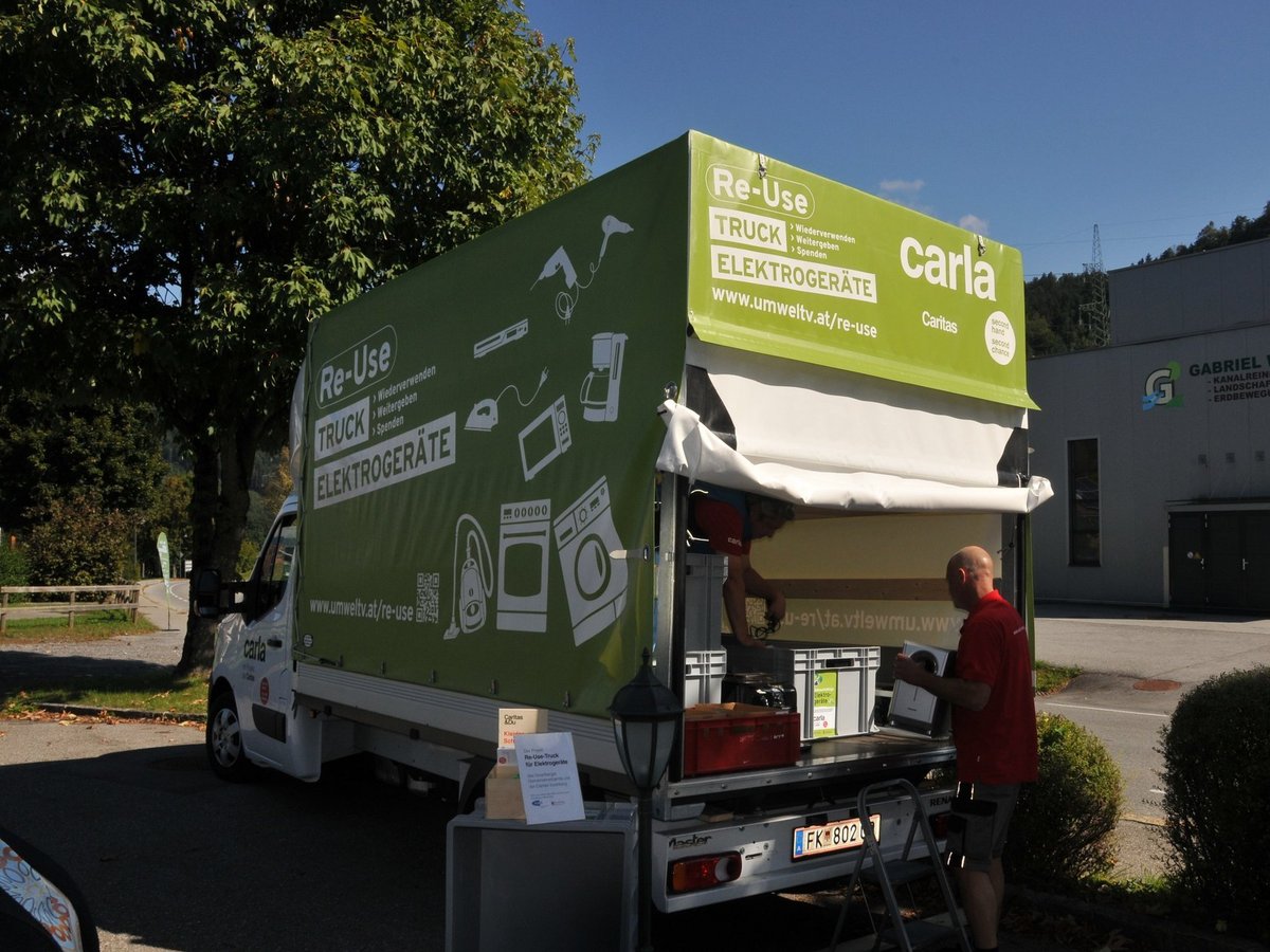 Der Re-Use Truck machte am 21.9. von 13:30 bis 15 Uhr in Göfis Station. Die drei hochmotivierten Carla Mitarbeiter konnten mehr als 8 Spendenboxen mit funktionstüchtigen Elektrogeräten füllen. Vom Staubsauger über die Küchenmaschine bis hin zur Gartenbeleuchtung fanden unterschiedlichste Dinge den Weg zum neuen Besitzer. Die Geräte wurden in einwandfreiem und blitzsauberem Zustand abgegeben. "Göfis ist super - ihr seid eine der spendenfreudigsten Gemeinden bisher auf unserer Tour!" meinte einer der Carla Mitarbeiter sichtlich stolz.