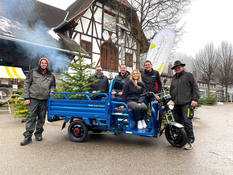 Eine sowohl großzügige als auch „bsundrige“ Spende erhielt das Team vom Sunnahof am 15. Dezember 2021 von Verantwortlichen der Firmen BayWa Lamag | Technik und Graf Carello, E-Transporter: Ein Elektro-Lastendreirad, das künftig die Mobilität am Sunnahof erhöhen und den Arbeitsalltag erleichtern soll.