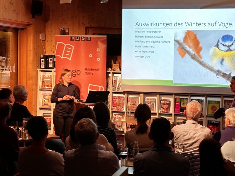 Johanna Kronberger informierte im voll besetzten bugo, was Vögel eigentlich im Winter machen und wohin sie ziehen. Sie gestaltete den Vortrag sehr lebendig und zog das sehr interessierte Publikum mit ein. So wurde die Frage, welche Vogelarten nehmen zu bzw. ab, gemeinsam gelöst. Auch eine spannende Hitliste, welche Vögel wieviel Kilogramm Insekten vertilgen oder welche Mengen an Futtervorräten sie für den Winter sammeln und verstecken, präsentierte Johanna Kronberger. Sie ist Biologin und arbeitet für die Naturschutzanwaltschaft und ist auch Vorsitzende von BirdLife Vorarlberg. Weiters gab sie wertvolle Tipps für die naturnahe Gartengestaltung, damit die Vögel nicht nur im Winter, sondern auch das ganze Jahr über einen wertvollen Lebensraum vorfinden. „Dieser fördert schlussendlich den gesamten Naturkreislauf und schafft zugleich auch Zeit zum Ruhen und Genießen für uns alle bei der Gartenarbeit!“, so Johanna Kronberger.
