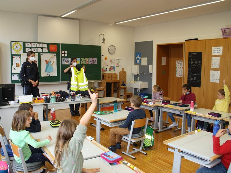 Zuerst erklärten sie uns in der Klasse, was für unsere Sicherheit wichtig ist.