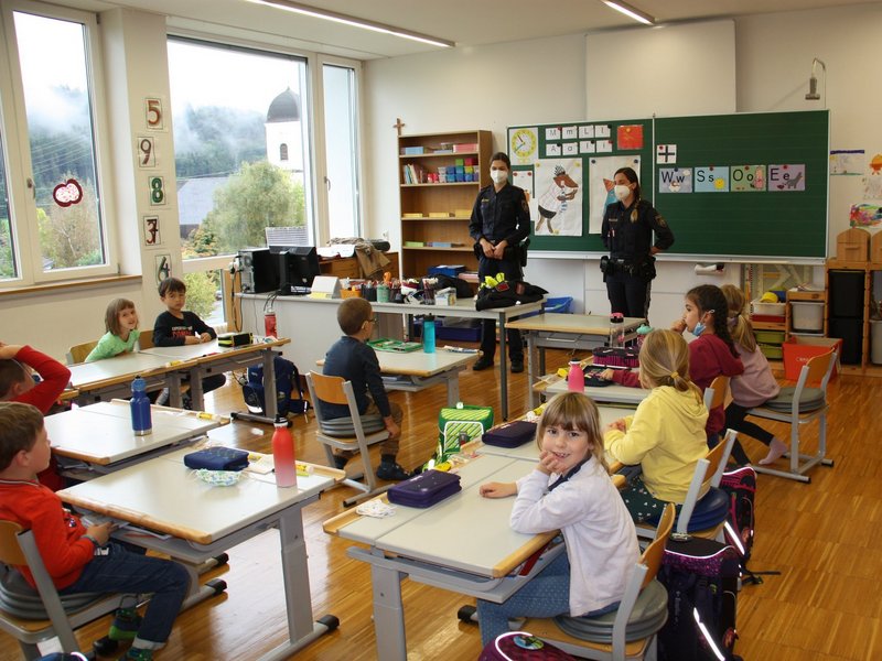 Pünktlich zum Schulbeginn bekamen die Erstklässler auch heuer wieder Besuch von 2 Polizistinnen.