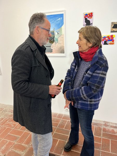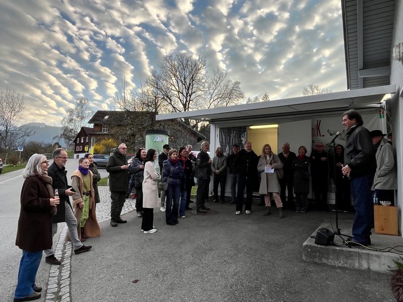 Bei der Ausstellungseröffnung begrüßte Harald Gfader, Obmann des milk‑Ressorts, die Gäste und zeigte sich erfreut, eine hauptsächlich in Wien tätige Künstlerin mit Vorarlberger Wurzeln im milk‑Ressort Göfis präsentieren zu können. Die zahlreichen positiven Rückmeldungen unterstrichen das große Interesse an Falks eigenständiger Bildsprache und Symbolik.