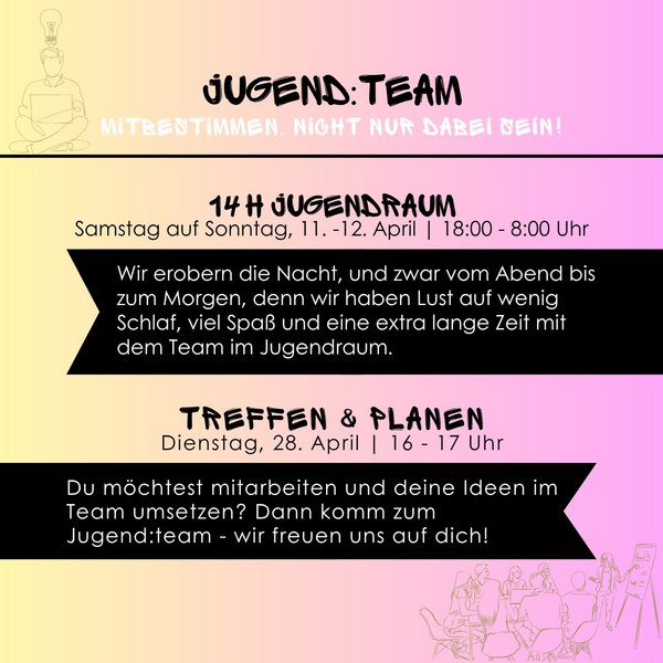 Du möchtest mitarbeiten und deine Ideen im Team umsetzen? Dann komm zum JUGEND:TEAM - wir freuen uns auf dich!