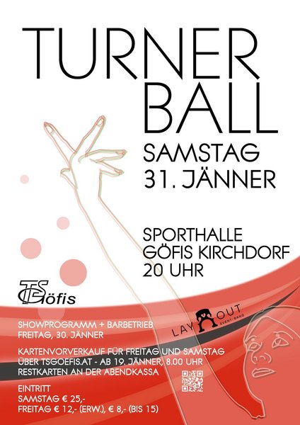 An beiden Abenden zeigen die Turner/innen der TS Göfis wieder ein tolles Programm mit Turn- und Tanzvorführungen. Die Bewirtungen sind wie üblich im Saal und an den Bars. Am Samstag, 31. Jänner unterhält Sie nach dem Showprogramm die Event-Band Lay Out aus Süddeutschland.