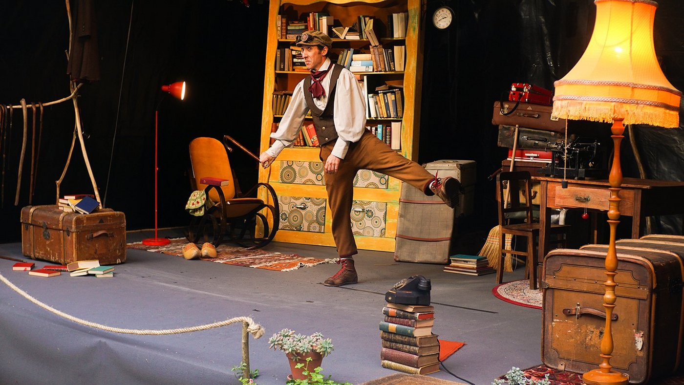 Ein Jemand reist durch die Welt, ist neugierig auf die Geschichten der Anderen. Echte Geschichten mit ausgedachten Menschen, in Büchern eingefangen, festgehalten! Während der Jemand diese Bücher sammelt, entdeckt er mehr und mehr über die Welt. Geschichten-Fänger ist ein Zirkustheater-Schauspiel über Bücher, Geschichten und die Dinge des Lebens. Über das Buch und seine Fähigkeit, direkt in die Köpfe der anderen hineinzuschlüpfen und mit ihnen zu plaudern. Allein durch die Vorstellungskraft!